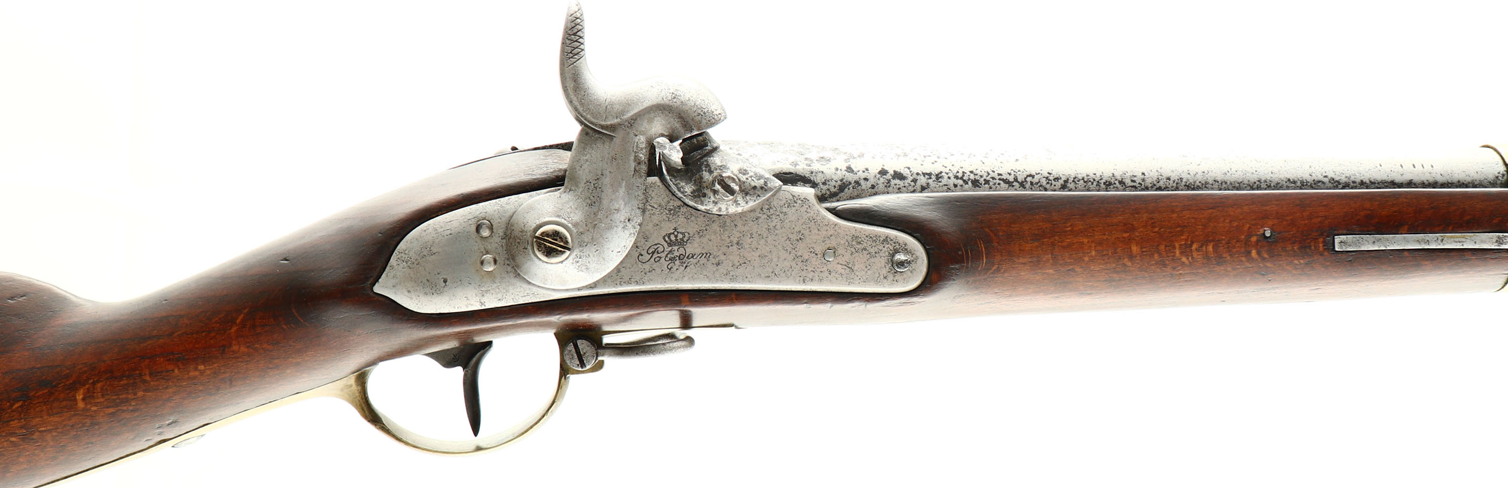 HISTORY: This Musket was as a flintlock in the 1810s to 30s at the Potsdam Arsenal in Prussia. In 1831 they developed a Percussion lock for the Potsdam musket. The new ones produced were the model 1831. Older muskets were converted to percussion as well. There is a ''1835'' date stamp on the barrel & buttplate, so this rifle was either converted to flintlock in 1835, or was made as a model 1831 in 1835, the ladder appearing to be what this gun is. These would start to be replaced by the Dreyse needle rifle, after Prussia adopted it in 1841. Lot of these Potsdam muskets were used during the civil war. In 1861 & 62, the Union bought around 165,000 of these muskets from various German states. A little over 100,000 were smoothbore & the rest were rifled. These muskets were mainly used by rear line & support troops to free up better Springfield or Enfield rifles for the front-line troops, but some of these would see front line use. There are reports of these being used by the Union as late as 1864.
