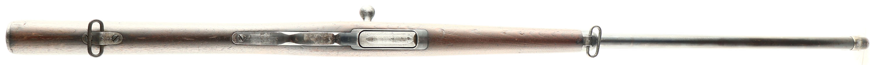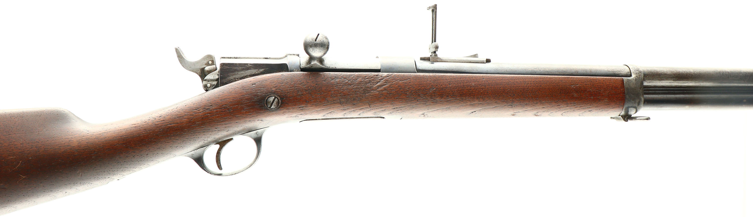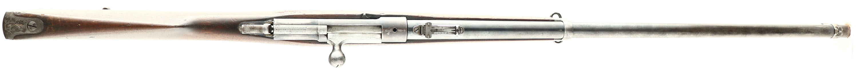 CONDITION: The straight wrist walnut stock is very good with some minor nicks, dings, scuffs & scratches. The left side of the wrist has a faded inspectors cartouche. There is a 2'' hairline crack on the right of the wrist, emanating from the screw escutcheon. The original blued metal finish rates 15% on the barrel with most of the barrel worn gray & starting to tone brown. The magazine tube rates 35%, again with spots of wear showing gray & starting to tone brown. The blued finish on the receiver rates 25% with more spots of wear showing gray & toning brown. Other metal parts have finish wear, speckling of brown patina & roughness. The left side of the receiver is marked ''U.S.I.D. 160''. This is the US dept. of the interior stamp & the rifle number from that batch stamp. He left side of the receiver band is marked ''H.N.'', this is the inspector stamp for Henry Nettleton. The top of the receiver band is marked with an arrow, ''P,'' & ''W.W.K.''. the ''W.W.K.'' stamp is the initials for US navy inspector Lt. William W. Kimball. the left rear of the barrel has another ''H.K.'' stamp. The top of the barrel, under the rear barrel band is stamped with a mix HP mark where the H shares the staff of the P as the left leg of the H. the rear of the bolt is marked with the Remington address with patent dates, ending in ''July 31, 1877''. The S/N ''451'' is stamped on the inside of the trigger guard tang. The bore is good. Its bright & shiny with proud rifling, but has roughness & a couple spots of light pitting. The barrel holds a small barleycorn front sight with a ladder U-notch rear sight marked 1 to 10. The stock carries a steel buttplate, toned dark with spots of cleaned rust/light pitting. The rifle has both bottom sling loops. Antique, No FFL Req - Value: 5000 to 10000