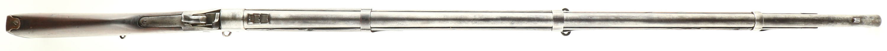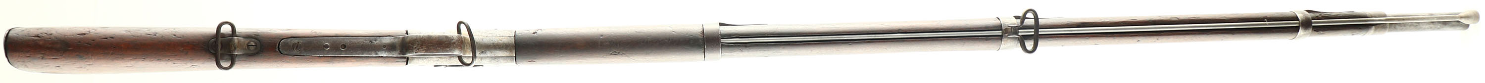 CONDITION: The two-piece straight wrist walnut stock is good. The stock has various nicks, dings, dents, & scratches from use/age. Chips & two cracks on the right side of the forend, between the middle & front barrel bands. The buttstock has some fitment issues around the wrist tangs & where it meets the receiver with gaps. Metal is proud to the wood on spots around the buttplate. The metal has toned to a mix of gun metal gray & dark patina. The metal is covered with roughness/pitting scars, more prevalent around the stock line on the barrel. The upper tang address marking is almost entirely worn away with faint outlines remaining. It is the older two-line address. The bore is fair to good. Its bright with some roughness & one spot of pitting. The barrel holds the original musket sights & is a small barleycorn front sight with a three leaf flip up, V-notch rear sight. The stock carries a steel buttplate, toned to a dark patina with pitting scars. Rifle has three bottom sling loops & has a muzzleloader ramrod in the place of a cleaning/clearing rod. The rifle also comes with a Model 1855 socket bayonet. Antique, No FFL Req. - Value: 600 to 1200