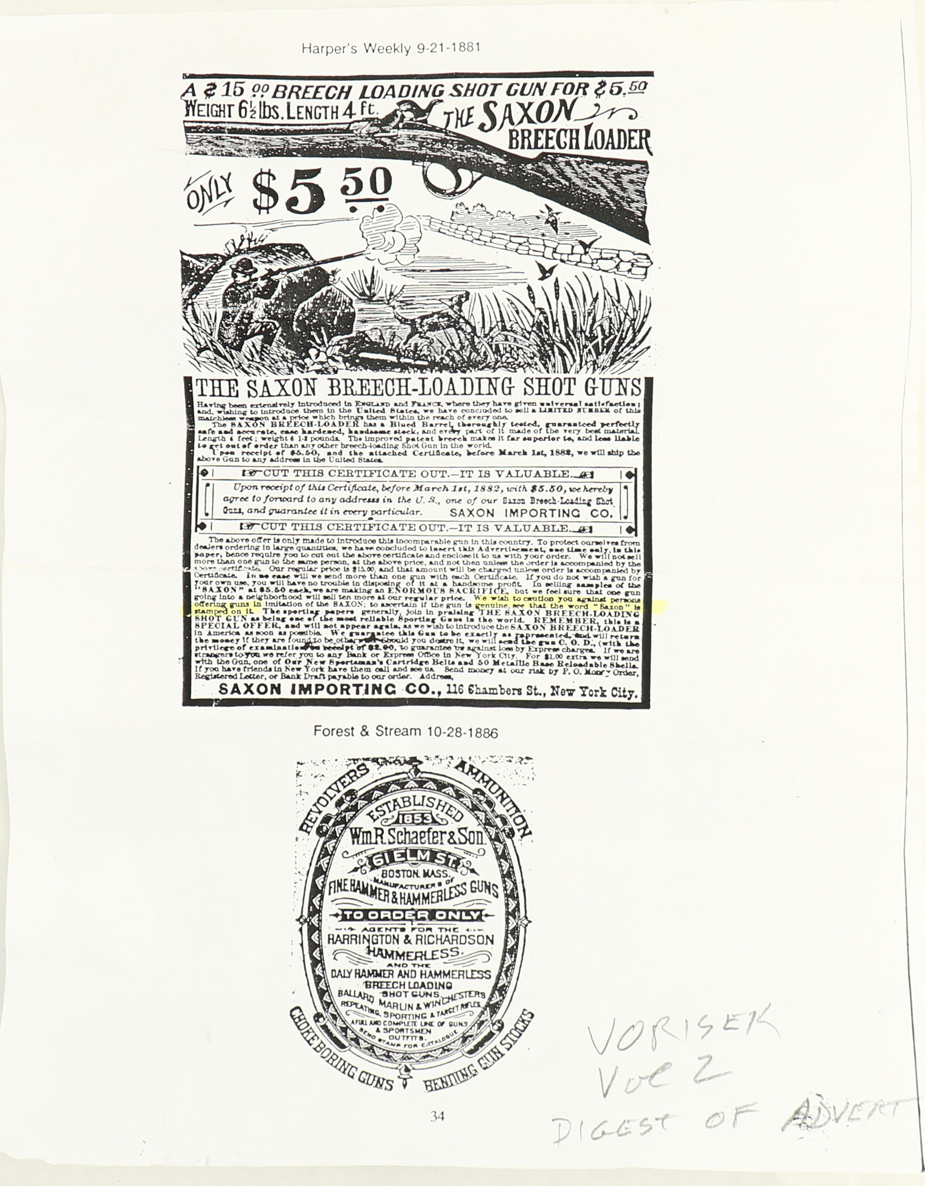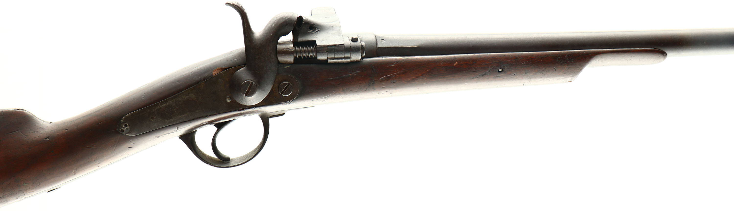 HISTORY: This started life as a French made Muzzleloader, either a MLE 1842 or a MLE 1853/57. It was then upgraded with the Tabariere breech loading system. invented in 1864, roughly 358,000 rifles had been converted by July of 1870, in time for the Franco-Prussian war where they were used by second line troops or in defensive roles since this weapon system was inferior to the Chassepot rifle. After the war they were sold to Belgium who converted them into very cheap shotguns, known today as ZULU guns. This was done in the late 1870s to the 1880s. large numbers of these would be bought by US importing companies & sold on the US hunting market as a cheaper alternative than the US made shotguns. Sometimes there were marked with trade names of ''ZULU'', or ''HUNTER''. These shotguns would cost 3-5 bucks where a US made pump action shotguns costed 15-20 bucks. This gun comes with a photocopy of a old Saxon ad from Harpers Weekley in 1881, that shows these guns being sold for $5.50