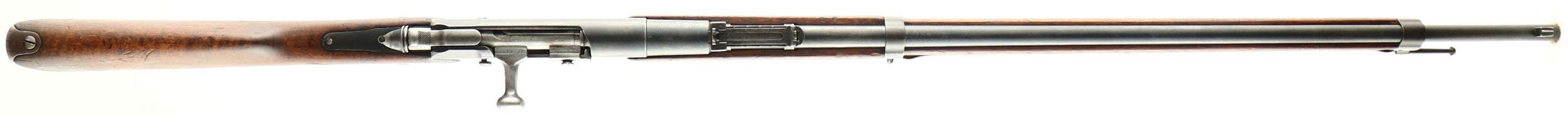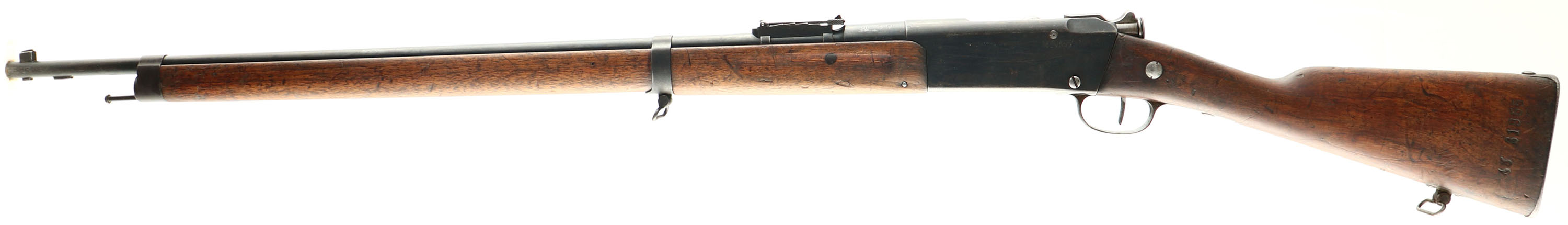 HISTORY: The Lebel is a major steppingstone in firearms development as a whole. It was the first rifle to chamber a smokeless powder cartridge (the powder used today). This new powder was developed in 1884 by Paul Marie Eugne Vieille. It was three times more powerful than black powder for the same weight & left substantially less fouling after firing. This new powder doubled the effective range of fire, allowed smaller bore rifles to be viable without black powder fouling, & would give way to reliable self cycling systems like machineguns. This advancement sent every other nation scrambling to develop their own smokeless powder & make a rifle chamber it. The development history of the Lebel is interesting. When the powder was invented the French Military planned on designing a whole new rifle & cartridge to fully exploit the new powder. They would spend the whole year of 1885 determining an optimal caliber. These plans would change in January of 1886, as a New French War Minister would be elected, General Georges Ernest Boulanger. He was a revanchist & wanted a new rifle in the new powder on his desk by the end of the year. He appointed General Tramond to head the project. They already spent this time designing a, so they took that & take parts from already existing rifles to make the new rifle. They took the 11mm Gras case & necked it down to the new 8mm bullet. They had to use a double taper on the case to achieve this effectively. The double taper design would handicap the French military system for decades to come, being hard to cycle repeating arms. The magazine, feeding system, & stock was taken from the MLE 1884 & MLE 1885 Gras-Kropatschek. The bolts locking lug design was taken from the Swiss Vetterli rifles. It used the trigger of the M1874 Gras. Lt. Colonel Nicolas Lebel, which the rifle is named after, designed the 8mm Bullet. They took all these parts & made the MLE 1886 Lebel. They would produce the Lebel from 1887 to 1904 with 3.45 Million made, enough to arm the whole army at the time & have plenty in storage. Production of parts would start up again in WW1 to repair existing rifles, & in 1916 some new rifles were made from extra parts but no new gun production of the Lebel would start up. The French were making new Berthier carbines for colonial troops at the time, with the need for rifles they would take the barrel & bayonet from the Lebel, put it on the Berthier 1907 as well as some other features to speed up production, & then the MLE 07/15 Berthier was born. The Lebel would stay in service with Franch clear until WW2 with new models being designed in the mid 1930s.