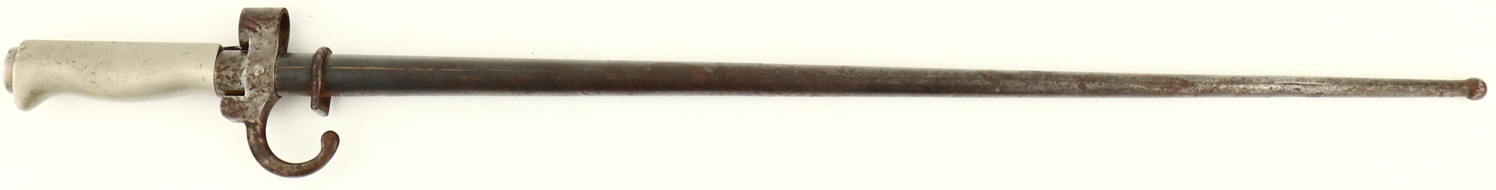 CONDITION: The two piece, straight wrist walnut stock is good with numerus nicks, dings, chips & scratches from use/age. The S/N is stamped into the left cheek of the stock marking is worn. The bottom rear of the forend is stamped with a S/N, marking is worn illegible. The metal has a old arsenal re-blue. The finish on the barrel rates 75% with scratches, thinning on the top showing gray, & a few small spots of patina. The receiver finish rates 70% with scratches, worn finish, & spots toning brown. the left side of the receiver is marked with three small circle proofs, ''MANUFATURE D'ARMES'', ''CHATELLERAULT'', ''MLE 1886 M 93''. Markings are faded from re-blue job. The left rear of the barrel is marked ''JH'', ''C'' in circle, ''S'' in circle, & the S/N. The right rear of the barrel is marked ''MA C 1892'' & a small worn proof. S/N matching bolt, mismatched receiver floorplate. The bore is good. Its bright with roughness & a spot of light pitting. The barrel holds a blade front sight with a stepped base/ladder U-notch rear sight. The buttstock carries a steel buttplate. buttplate was left in the white & is toning to a brown patina. Rifle has both sling loops. Rifle comes with the correct M1886 ''Rosalie'' bayonet with sheath. It has a quillon & silver alloy handle. This rifle is not marked ''N''. Ball N 8mm Lebel should NOT be fired in this rifle as its higher pressure & these old rifles were not proofed to its level & could cause the gun to blow up. Antique, No FFL Req - Value: 1000 to 2000