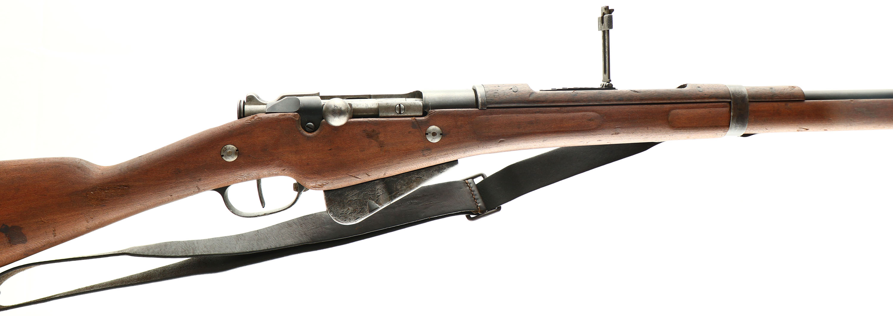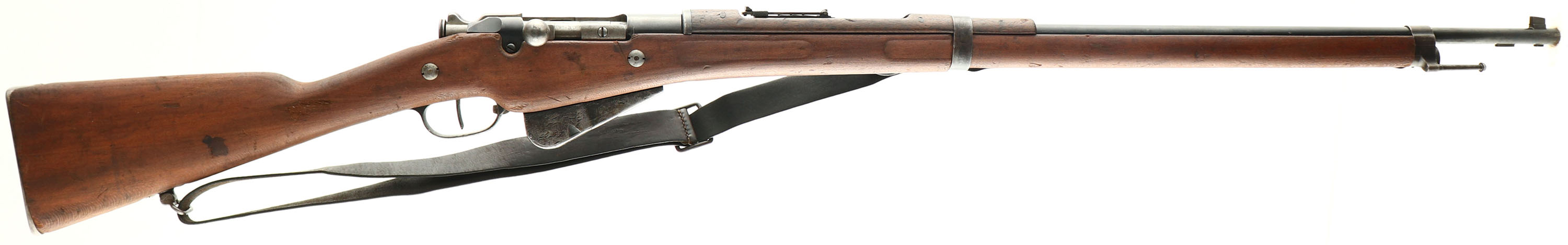 HISTORY: At the outbreak of WW1, France like all the other countries was in need of more infantry rifles. Production of the new Lebel rifles stopped in 1904 since they made enough to equip the whole army at the time. They already had factories making the Berthier rifle for the colonial troops so they converted the Berthier into a infantry rifle with a longer barrel & making it mount the Lebel bayonet. These would stand side by side with the Lebel as France mainline infantry rifle. This one is a later update with a larger 5 shot magazine instead of the older 3, this rifle can take both 3-shot & 5-shot clips though. This gun is also marked ''N'' on the chamber. This means it was modified to use the new Ball N cartridge. This new cartridge was tailored to long range, heavy machine guns having a heavier bullet & more powder. This results in more chamber pressure & the chambers of older rifles had to be modified to safely fire this new cartridge. The cartridge was developed in 1932 & all weapons still French inventory from 1934 to 1939, with the old chamber was modified to the ball N chamber & marked ''N'' on the barrel or receiver. Firing Ball N ammo out of a non ''N'' marked gun is unsafe & shouldnt be done. A ball N marked gun is safe to fire any 8mm Lebel out of.