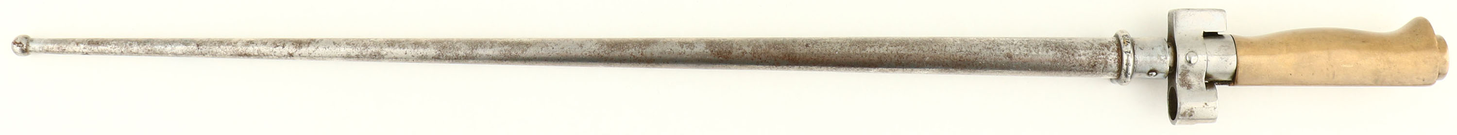 CONDITION: The straight wrist walnut stock is very good with some small nicks, dings, & scratches from use/age. The upper handguard has a 1 1/4'' crack on the barrel band extension. The S/N is stamped into left cheek of stock. The metal has an arsenal re-blue with spots of roughness/cleaned pitting under the finish. The finish on the barrel rates 80% with full coverage but has scratches spots of thinning. The top of the barrel is starting to haze/tone brown with deep blue around the stock line. The receiver finish rates 75% with spots thinning & toning brown & scratches. The magazine has heavy pitting scars. the left side of the receiver is marked with a small ''F'' proof, ''ST. ETIENNE MLE M.16. the top of the receiver band is marked ''N''. The left rear of the barrel is marked ''ST'', ''C'' in circle, ''M'' in circle, & the S/N. the right rear of the barrel is marked ''MA'', ''S'', ''1917''. S/N matching bolt & trigger guard. The bore is very good. its bright with some roughness. The barrel holds a large block front sight with a groove cut in the top. The rear sight is a stepped base/ladder, deep square notch sight. These are the war time designed larger sights for quicker target acquisition over the older post sights. These started showing up on rifles late 1914 to early 1915. The stock carries a steel buttplate, left in the white. Buttplate has scattered light patina. The rifle has a rear bottom mounted sling swivel, & a left side forward sling ring. Rifle comes with a period correct black leather sling, & a Lebel ''Rosalie'' bayonet with sheath. Bayonet has no quillon & a brass handle. S/N matching sheath to bayonet, does not match rifle. A beautiful example of a WW1 French infantry rifle. FFL or C&R Req. - Value: 800 to 1600