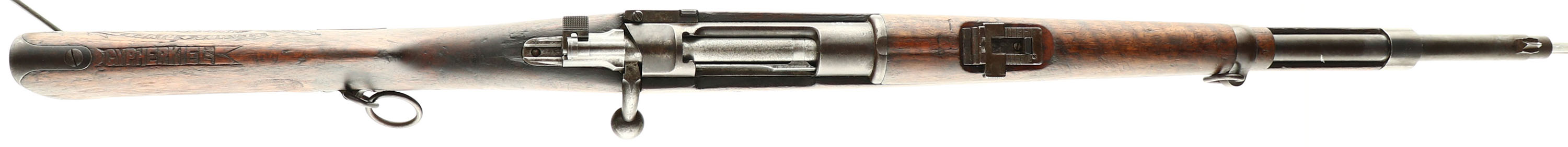 HISTORY: This Mauser was part of the first contract of 25,000 rifle the ZAR ordered from Ludwig Loewe. It was ordered on June 2nd, 1896 & consisted of 20,000 standard long rifles & 5,000 carbines. These are the some of the very last Mausers marked Ludwig Loewe as they would merge with Deutsche Metallparonenfabrik to create Deutsche Waffen-und Munitionsfabriken (DWM), in late 1896. This rifle, like many other Boer Mausers, was personalized by its owner with the battles the soldier fought in being carved into the stock. This is seen on Boer rifles more frequently than other nations because the Boers owned their service weapon & not the government. The ZAR government would buy batches of rifles (practically all Mausers) & would sell them to the soldiers. This made the solider get familiarized with that exact rifle learn how it shoots, figure out all it quirks since they would do all their hunting & shooting competitions with that rifle. This is in contrast to standard military practice where its just a rifle out of the rack that the soldier only practices with on the range. This would prove devastating to the British with the smaller force of Boers putting up fierce resistance will long range accurate fire from their Mausers (even with the British winning the conflict the effect of the Mauser would make the British government look at its design & develop the P14 rifle, which its action is a copy of the Mauser). The carvings in the stocks read ''JOHANSBURG'', ''ELANDS RIVER'', ''PRETORIA'', ''MAFEKING'', ''ZEERUST'', ''LEUWFONTEIN'', ''CYPHERKIEL'' (aka SYFERKUIL), ''BEIRA''. The carvings are all in beautifully etched banners & the work is outstanding to have been done by hand, by a soldier out in the field. There were some carvings on the right cheek of the stock, but they are mostly worn or sanded off. The owner of this rifle fought with General De la Rey during the summer campaign in the western Transvaal which was headed by General Babington from March to May of 1901, as Leuwfontein & Syferkuil are closely linked to the summer campaign. This rifle comes with more information about the rifle, photos, & maps of the area where the battles took place with the actual spots shown & highlighted.