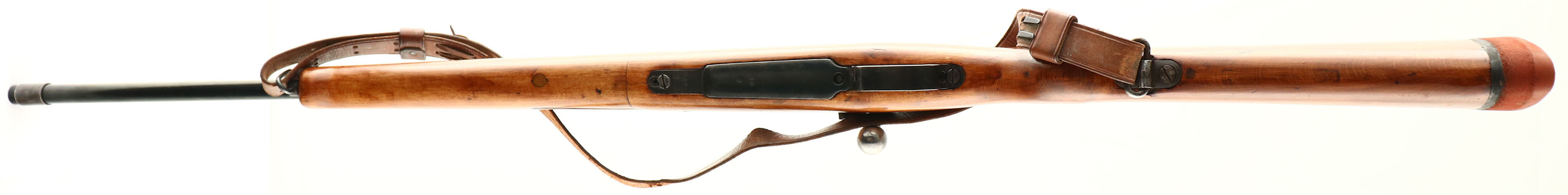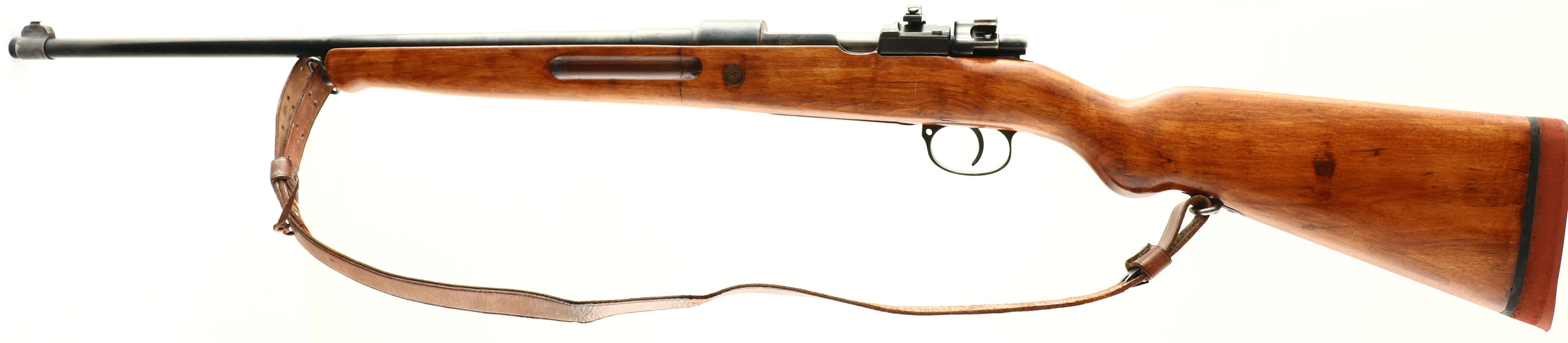 Amberg Arsenal, Model: Gewehr 98, Cal: 7.92x57mm (8mm Mauser), MFG: 1916, S/N: 6539 (serial block n), Bolt action rifle, 22'' barrel. The semi-pistol grip wood stock is very good as being cut down, shaped, sanded & re-finished. There is a duffle cut repair just in front of the magazine, repair is solid. There is a resin plug fill on the buttstock & on the bottom of the forend. there are the faint remains of the outlines of a couple cartouches on the belly of the stock & bottom of the wrist. The metal has been re-blued & rates 80% with spots of thinning & light patina. The left side of the receiver is marked ''GEW.98'' in German script. The left side of the receiver band is marked with the S/N & a lion proof. The top of the receiver band is marked with a crown over ''AMBERG'', ''1916''. The barrel is marked with a few small proofs & misc. part/assembly numbers. S/N mismatched bolt, trigger guard & magazine floorplate. All bolt components S/N match. Bolt appears to be from a K98k with Waffenamt proof marks & having a bent bolt handle. The bore is good. its bright with roughness. The barrel holds a aftermarket beaded blade front sight marked ''PACIFIC''. Rear sight is a receiver mounted Aperture rear sight marked ''REDFIELD''. Both sight bases have light speckled surface rust. The stock carried a ''AIROGEL'' rubber recoil pad. The rear sling mount is original with a added front swivel to the forend. Rifle comes with leather sling. FFL or C&R Req. - Value: 200 to 400