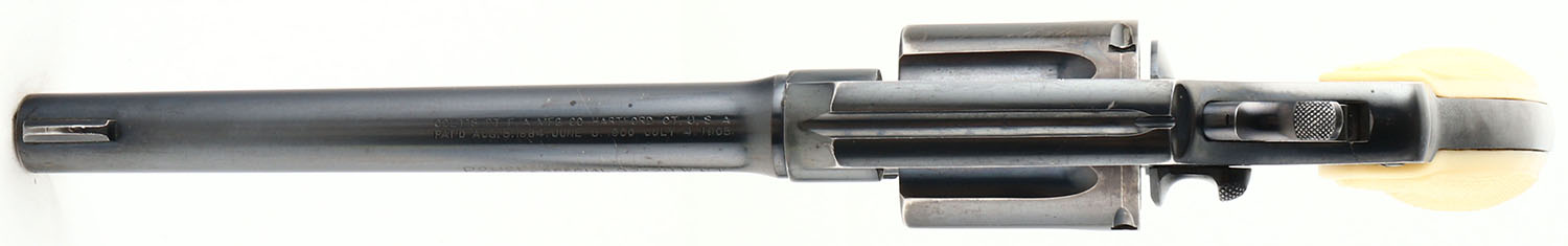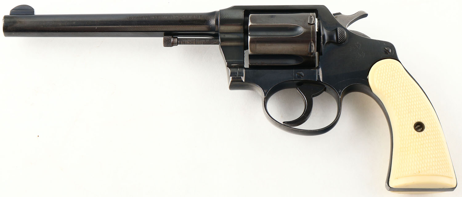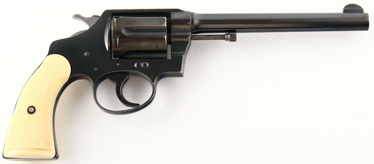 Colt, Police Positive Special - First Issue, CAL: 32-20 WCF, MFG: 1923, SN: 272122, Double Action Revolver, 6'' barrel. The top of the barrel is stamped in two lines ''COLTS PT.F.A MFG. CO HARTFORD, CT. U.S.A/ PAT'D AUG.5.1884 JUNE 5 1900 JULY 4 1905''. The left side of the barrel is marked ''POLICE POSITIVE SPECIAL 32-20 WCF''. The left side of the frame has the Rampant Colt logo. The SN can be found on the inside of the frame. The replacement faux ivory checkered plastic grips are excellent. The original metal blue finish on the barrel rates 80%, the frame rates 90% & the cylinder rates 70%. Bore is excellent. U-notch rear sight & blade front sight. FFL or C&R Req. - Value: 300 to 450