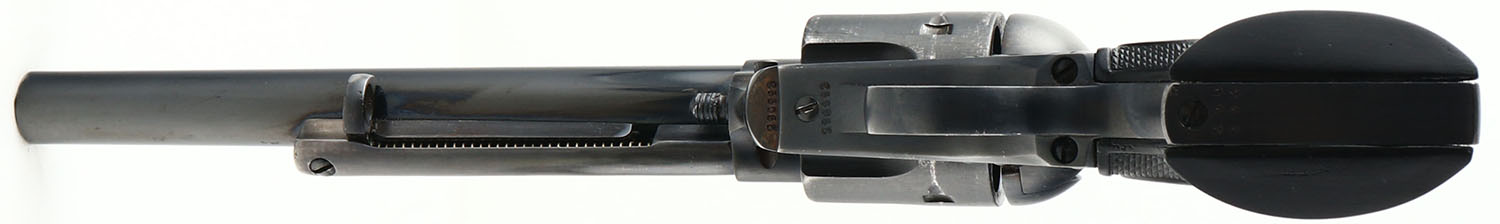 Colt, 1873 Single Action Army, CAL: 44-40, MFG: 1907 (frame), SN: 290993, Single Action Revolver, 7 1/2'' barrel. This revolver is compiled of mis-matched parts. The replaced barrel is marked ''COLT FRONTIER SIX SHOOTER''. The left side of the frame has the standard two line patent dates & the circled Rampant Colt logo. The SN can be found on the frame, trigger guard & butt. The replacement Rampant Colt checkered hard rubber grips are excellent. There are minor contusions & scrapes. The original metal blue finish on the replaced barrel rates 95%. The frame, cylinder & trigger guard have been buffed & refinished, rating 80% coverage, with areas of thinning, toned to a brown patina. Bore is excellent. U-notch rear sight & blade front sight. Perfect for a utilitarian shooter who isn't worried about condition or originality. FFL or C&R Req. - Value: 500 to 1000