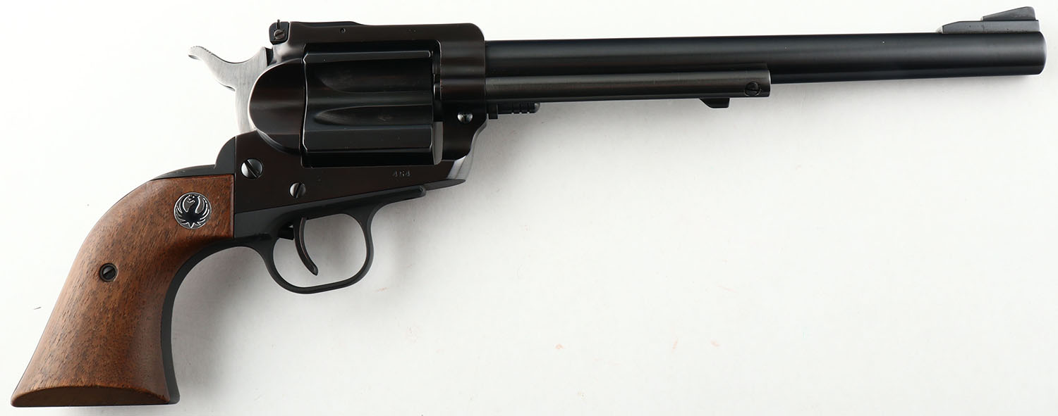 RARE, Ruger, Hawkeye, CAL: WIN 256 MAG, MFG: 1963-64 only, SN: 454, Single Shot Pistol, 8 1/2'' barrel. This pistol was fully & professionally restored. The left side of the barrel is marked ''RUGER HAWKEYE/WIN .256 MAG.CAL.'' & the Ruger Pheonix logo. The left side of the frame is marked ''STURM, RUGER & CO/SOUTHPORT,CONN.USA''. SN on the right side of the frame. Round cylinder was replaced by a rectangular rotating breechblock. The Ruger logo medallion wood grips are excellent. There are minor handling marks. The blued finish on the barrel rates 99%, & the frame rates 98%, toning plum. The factory barrel taps have been filled. The matte finish on XR3-RED grip frame rates 99%. Bore is excellent, near mint. Adjustable rear sight & elevated serrated blade front sight. There were only 3,043 mfg., making these very rare. Although this example was restored, these still hold a lot of value & would be worth significantly more if in original condition. The Ruger Hawkeye .256 is a fine long-range handgun. FFL or C&R Req. - Value: 1000 to 2000