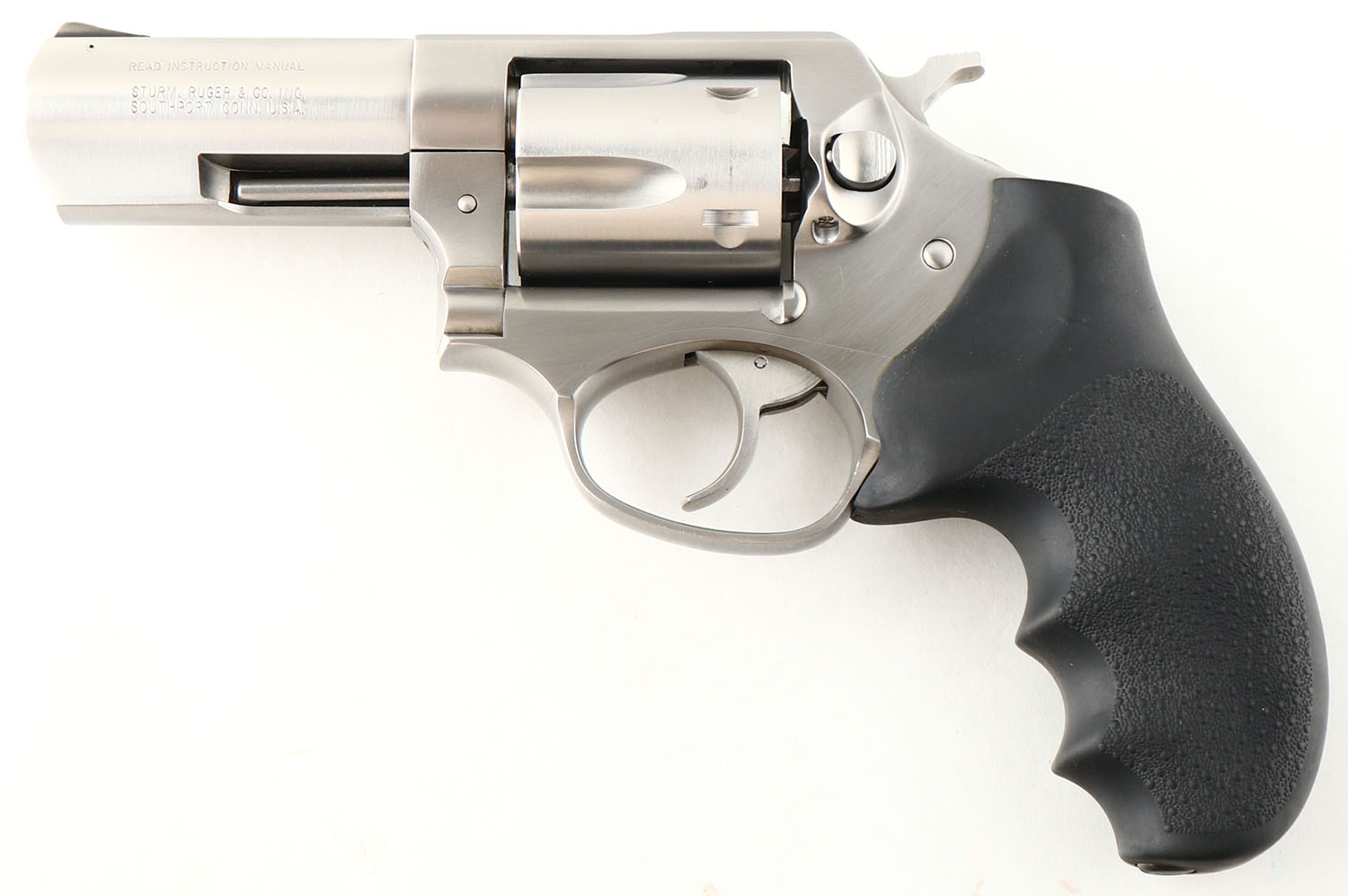 Ruger, Model SP101, CAL: 357MAG, MFG: Modern, SN: 572-92926, Double Action Revolver, 3'' barrel. The Hogue stippled rubber grips are excellent. The stainless steel finish is excellent overall. Bore is excellent. Comes with an unmarked custom leather holster. FFL Req. - Value: 500 to 750