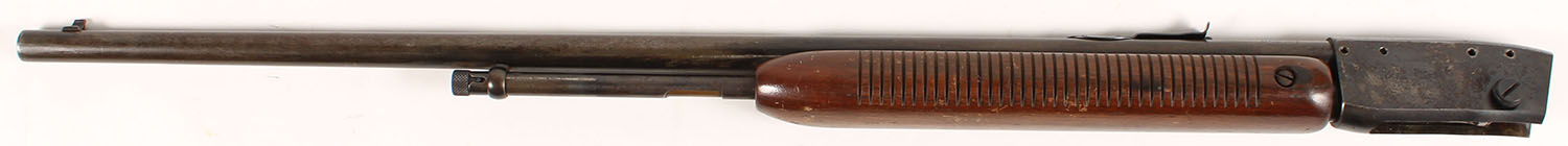 PARTS GUN, Remington, Model: 121, .22 S.L.LR. Cal., MFG: 1950, SN: 140752, Pump Action Rifle, 24 3/4'' Barrel, The buttstock is missing, but the original forend is very good, with minor scratches, nicks & contusions to the thinning original finish. The original metal blue finish is toning brown, with 10% coverage on the barrel & mag, 70% on the receiver, but with spotty areas of pitting on receiver & mag. Bore is excellent. Barrel carries the original adjustable rear & blade front sight. Bolt present. The stock, back & lower portion of receiver, trigger guard & trigger are all missing. There may also be other small internal parts missing. We do not know all parts which are missing. Therefore, this rifle is being sold ''AS-IS, with NO RETURNS & a recommendation for gunsmith repair. 21 years old or older to buy. FFL or C&R Req. - Value: 100 to 200