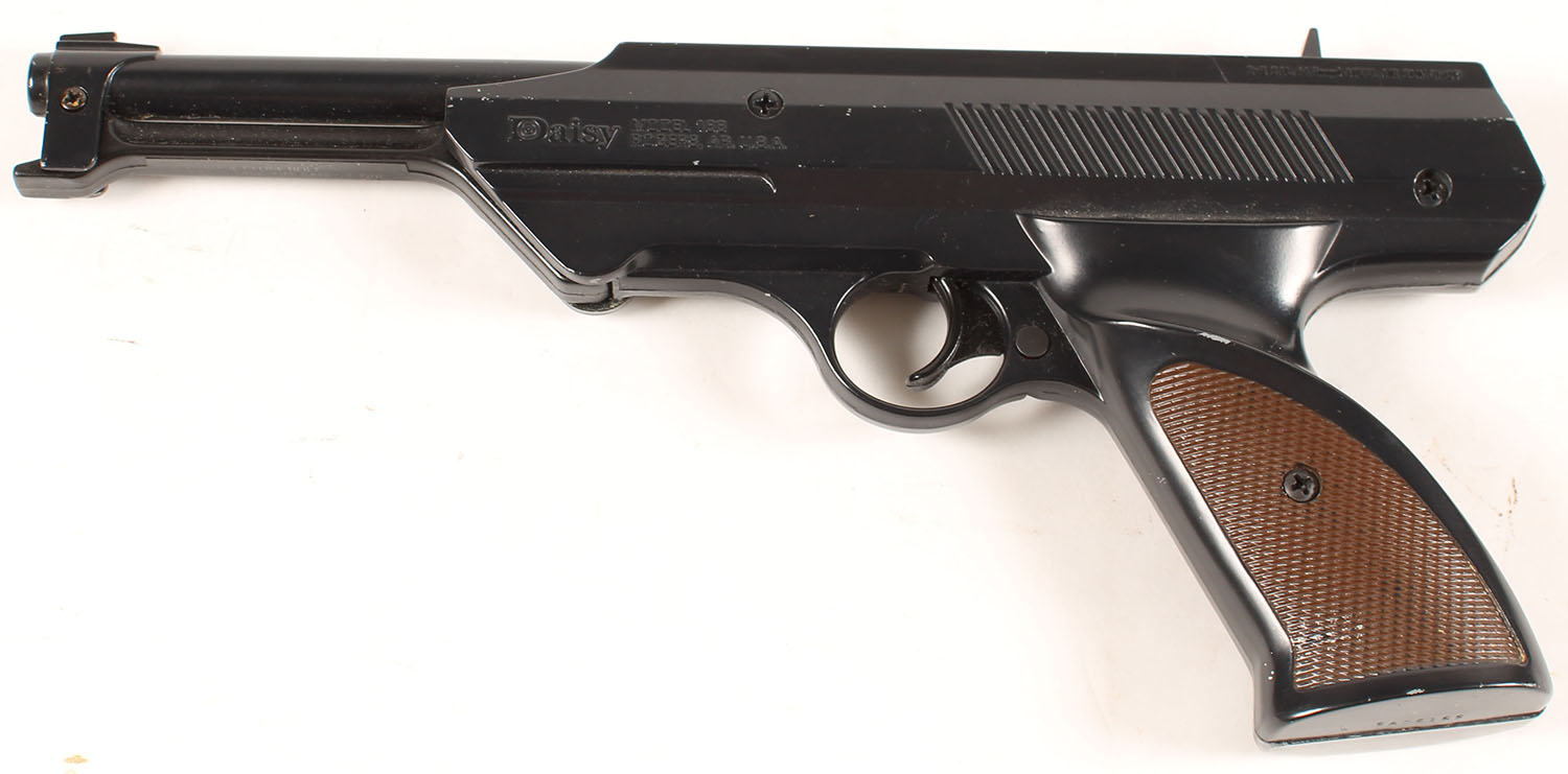 Daisy, Model 188, Cal: BB (4.5mm) steel air gun shot, S/N: 5A06155, pump up air pistol,. checkered grips, cast metal frame. Grade: Excellent - Value: 30 to 90