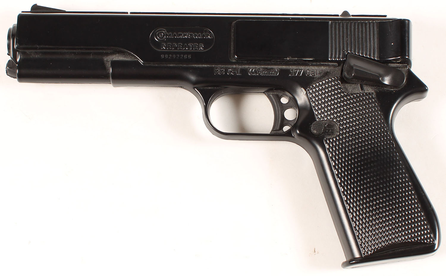 Crosman, Marksman Repeater, Cal: .177 BB, S/N: 99292265, spring actuated BB gun, checkered grips, cast frame, steel barrel insert. Grade: Excellent - Value: 20 to 40