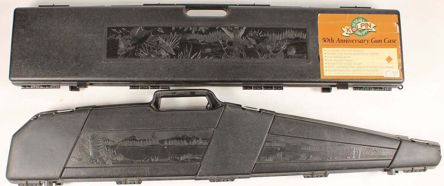 Lot of two gun cases, Field Locker & Kolpin, both have foam, Field locker measures 51'' x 8 1/2'', Kolpin measures 47 1/2 x 9 1/4''. Grade: Very Good ++ - Value: 20 to 60