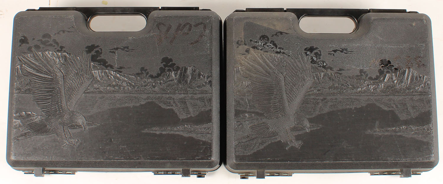 Lot of two, hard plastic pistol cases, Doskocil, both have foam, both measure 6'' x 12'' inside. Grade: Very Good ++ - Value: 20 to 60