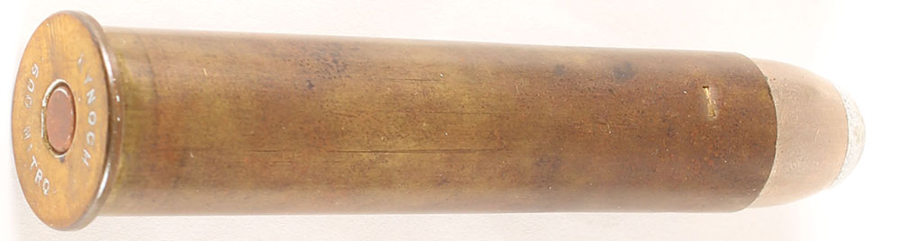 H/S: Kynoch 600 Nitro, cop. Pri., jacketed soft point bullet. Grade: Excellent - Value: 30 to 60