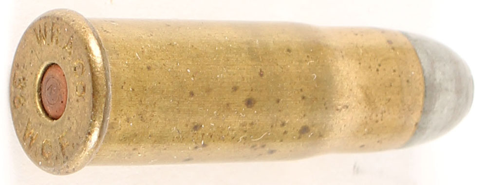 38 WCF. HS:''W.R.A. Co. 38 W.C.F.''. FN HP Tinned FMJ w/ #4 prmer. Scarce Loading. See Shuey, Vol 1, Pg 284. Grade Excellent - Value: 20 to 40
