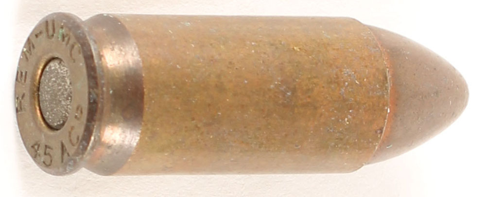 EXPERIMENTAL H/S: REM UMC 45 ACP, 45 Thompson cart., Nic. Pri, pointed FMJ. Grade: Excellent - Value: 20 to 40