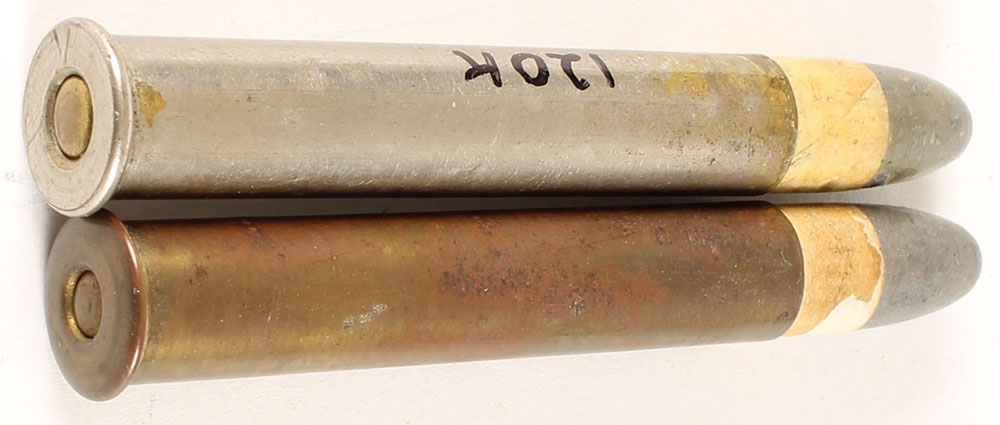 Lot of 2, .45 Sharps Straight, 2.6'' case, PPLDRN, no H/S, 1 nickel case large primer. Grade: Excellent - Value: 30 to 100