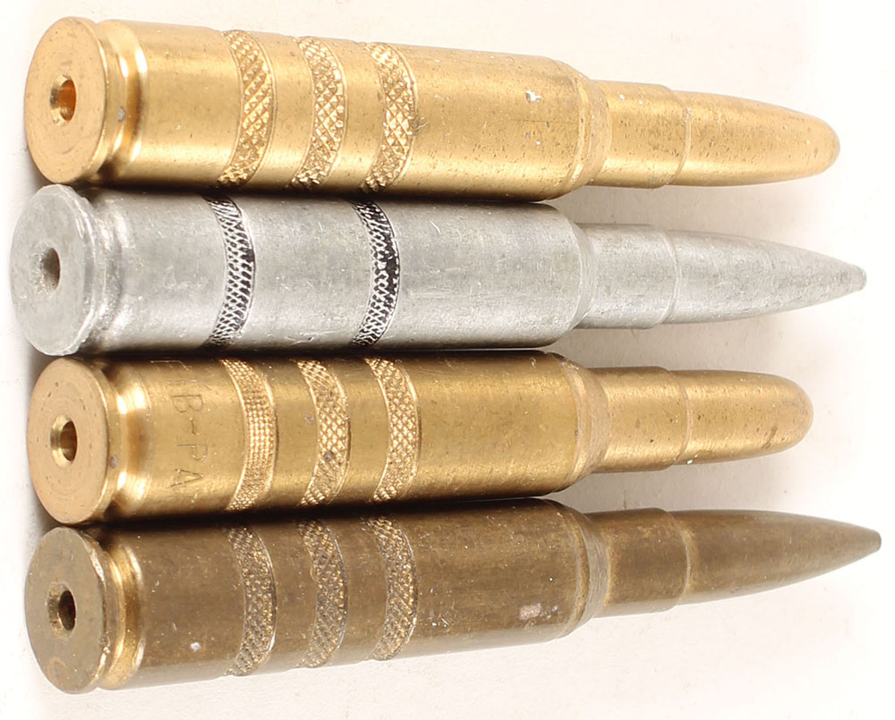 Lot of 4. 7.5x55 Swiss. NHS. Military 1 piece dummies, 3 Brass and 1 aluminum. Grade Very Good ++ - Value: 30 to 60