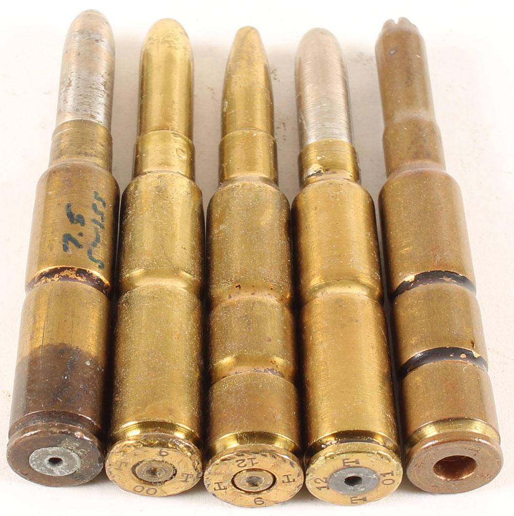 | Lot of 5. 7.5x55 Swiss. Military Dummies. Various military he...