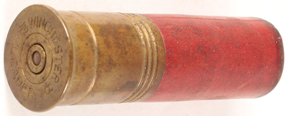 H/S= ''WINCHESTER No 8 LEADER'', 8 ga., . 3 1/4'' OAL, loaded red paper case, TW: ''DUPONT 5 1/2- 4 1/4 W.R.A.Co'' Grade: Very Good - Value: 20 to 100