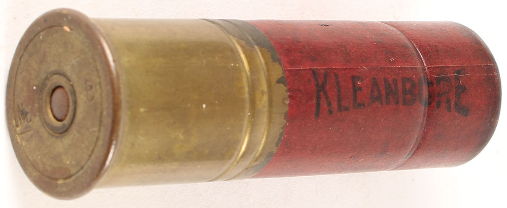 H/S: ''No 8'', 8ga., 3'' OAL, loaded red paper case, has ''Kleanbore'' on side, TW: ''Remington UMC 5 1/2- 1 3/4- 4C DuPont''. Grade: Very Good - Value: 16 to 60