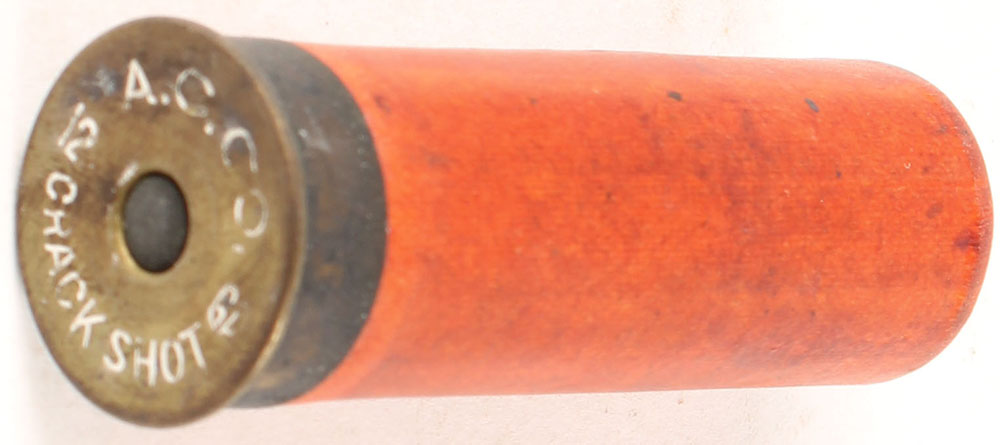 | RARE S.C.C., CRACK SHOT, 12ga, loaded shell, tan top Wad, 3-1-6....