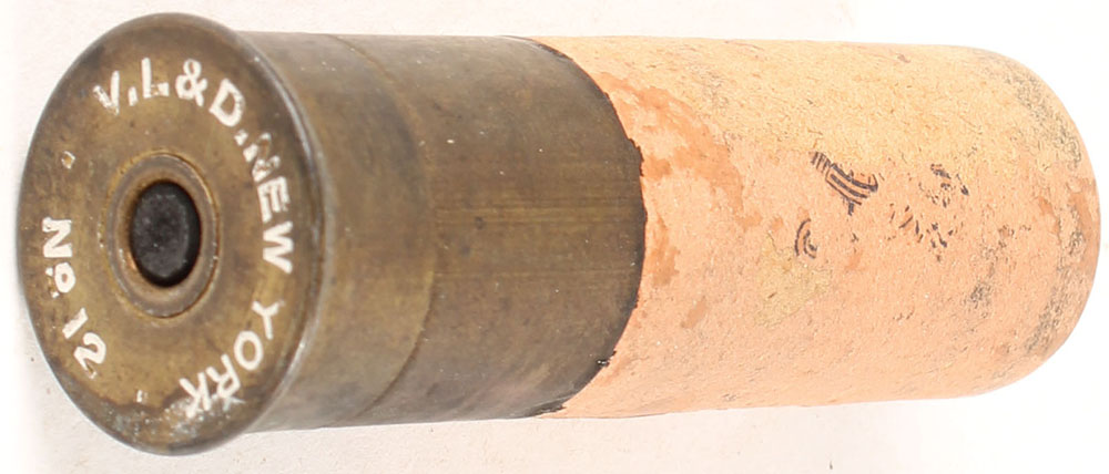VON LENGERKE 12 12 & DETMOLD, loaded red paper case, TW V L & D NEW YORK, shell shows wear. Grade: Good ++ - Value: 2 to 30