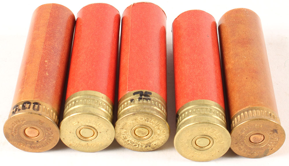 | Lot of 5, Dominion Cart. Co., Empty 16ga., red paper shotshells,...