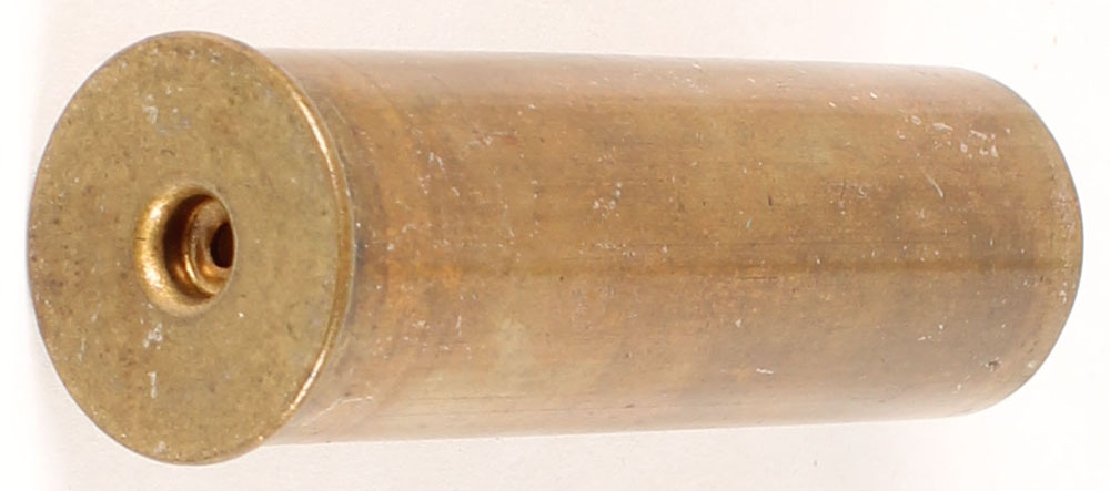 NPE, HS: none, brass case, 12ga., folded head for export, no primer, 2 1/2''. Grade: Excellent - Value: 10 to 30
