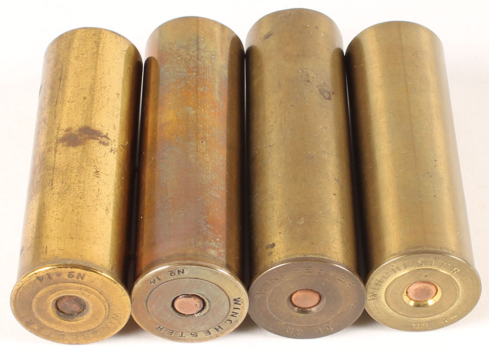 Lot of 4, Winchester 14ga., NPE, brass shot shells. Grade: Excellent - Value: 20 to 80