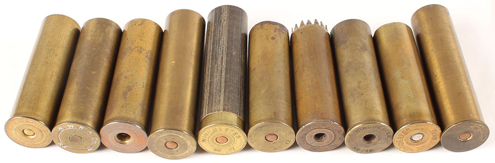 Lot of 10, Winchester 12ga., NPE, brass shot shells. Grade: Excellent - Value: 30 to 120