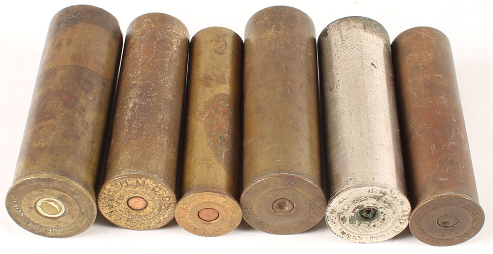 Lot of 6 Brass NPE shot shells. Grade: Good - Value: 6 to 30
