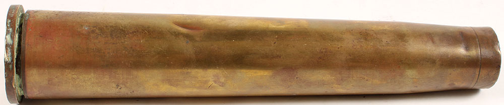 US, 40mm case for Bofors 40mm L/60 Anit-Aircraft gun. H/S: 40MM M25'', ''LOT-NES 73 1944''. OAL 12 1/8''. Grade: Very Good + - Value: 10 to 50