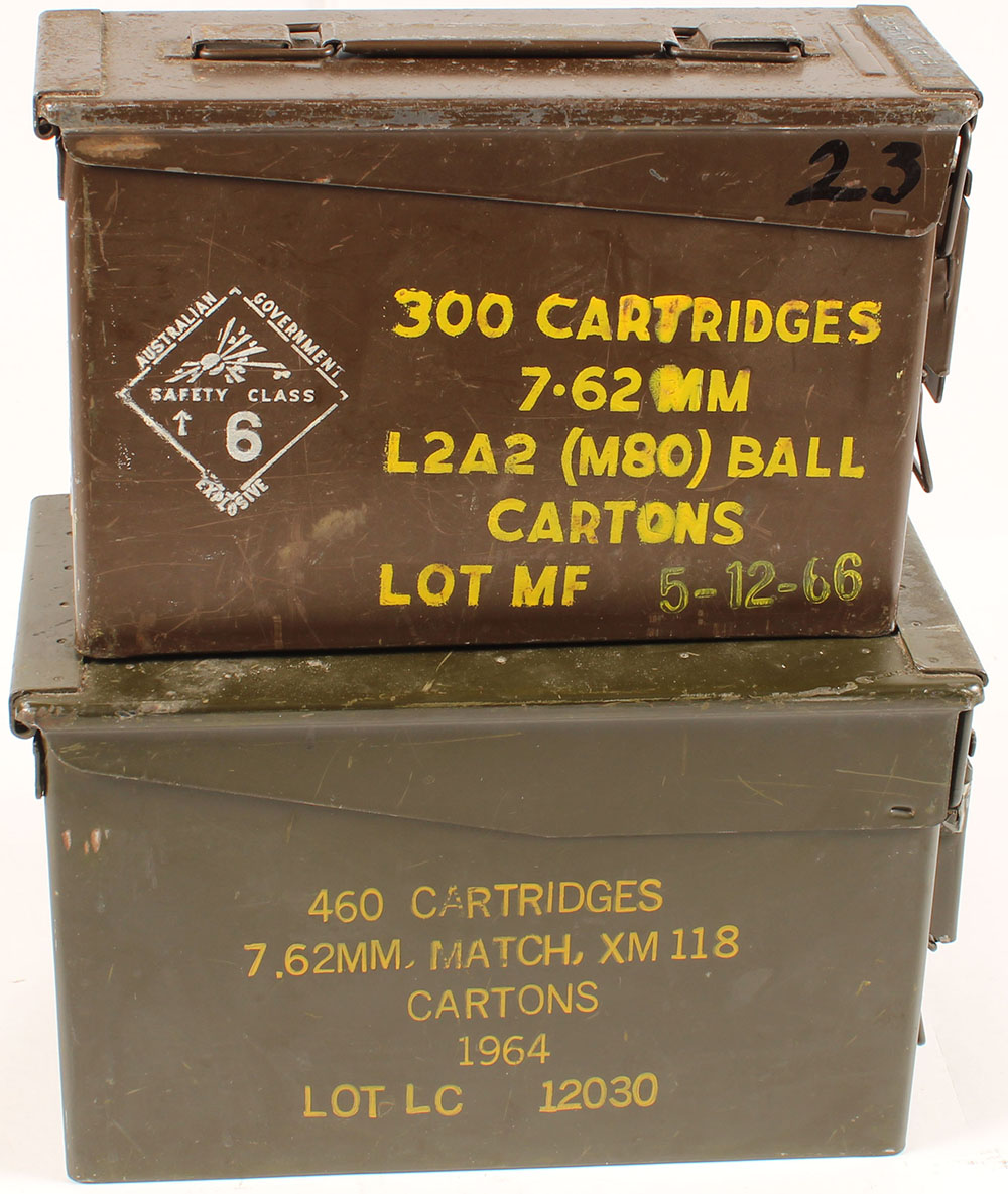 | Lot of two US ammo cans, one .50 M2A1, one .30 M19A1, both empty...