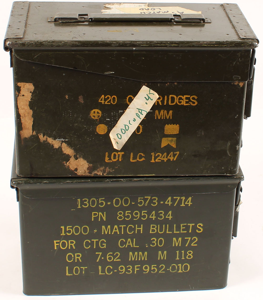 | Lot of two M2A1 .50 Cal metal ammo cans, both empty, insides of ...