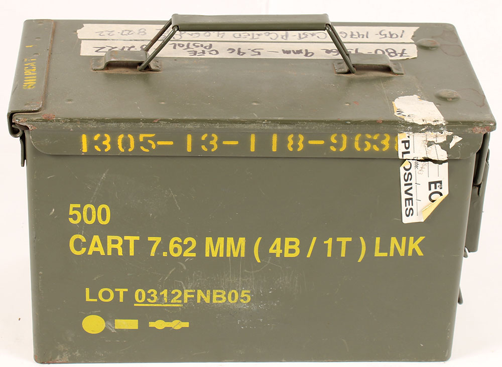M2A1 .50 Cal ammo can, fill with approx. 750 Rds. Of 9x19mm, Hollow point handloads, ammo is excellent, being sold as components since they are hand loads, fire at your own risk. Grade: Excellent + - Value: 150 to 400