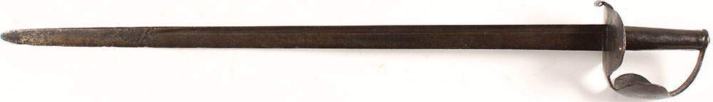 American/British, Revolutionary war era, British Sea Service Naval Cutlass, ''Double disk'', pre British 1804 pattern, made from the 1750's-1800, these were used by both British & American forces, with Americans using captured swords or making copy's. No visible markings on the sword. Metal grip, edge has chips, metal covered with roughness/pitting scars. Grade: Very Good - Value: 300 to 600