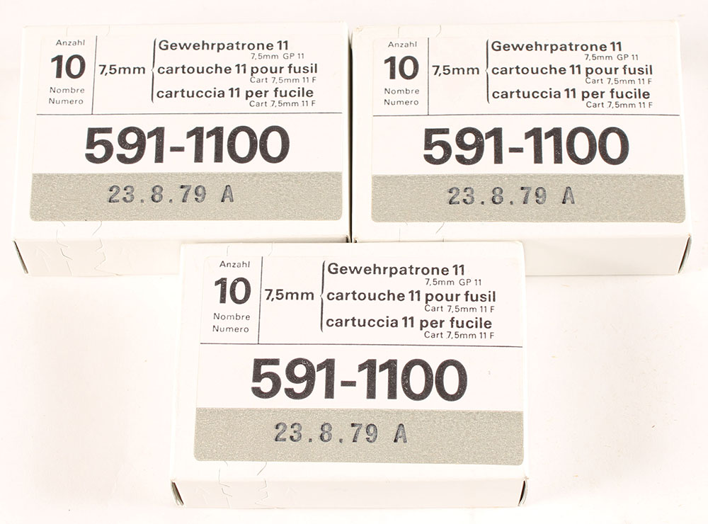 Swiss, Lot of (3), GP11, 7.5mm Swiss, FULL & SEALED, 1pc. White boxes with white labels, boxes are MINT with minty color, corners are sharp, edges are crisp. Grade: MINT - Value: 36 to 54