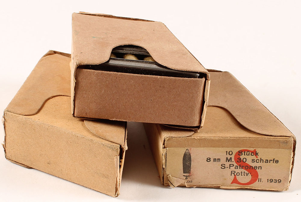 | Lot of three Austrian, 8mm M.30 Scharfe S-Patronen (8x56mmR), 10...
