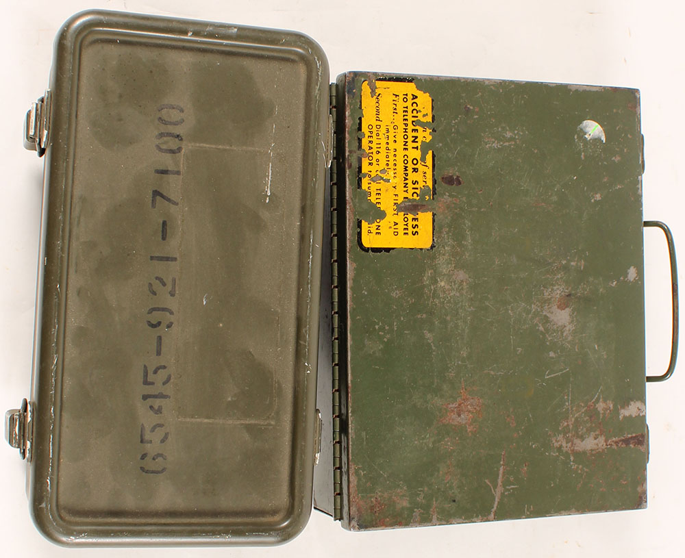 Lot of two, Metal military first aid kits, both empty. Grade: Excellent - Value: 8 to 60