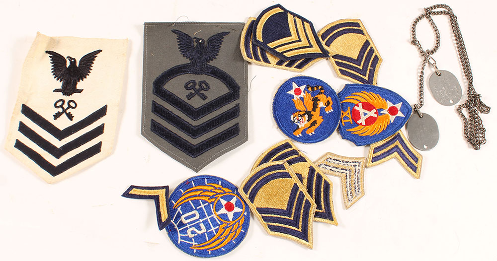Large lot of Military patches & dog tags. Grade: Very Good ++ - Value: 10 to 100