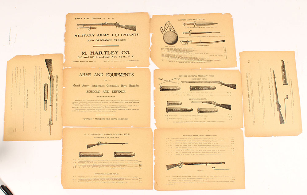 M. Hartley Co. 1903-04 Military Arms price list pages, 8 pages in total. Grade: Very Good + - Value: 10 to 80