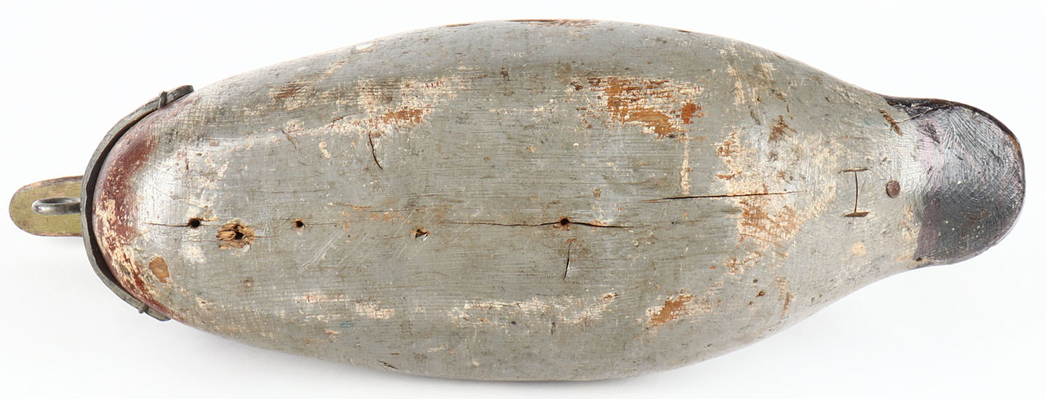 Standard Mallard Drake by Mason Decoy Company, Detroit, MI, 1896-1924. Glass eyes one missing, solid wood, old repaint, structurally excellent, has added lead & line tie to front. Grade: Very Good - Value: 40 to 80