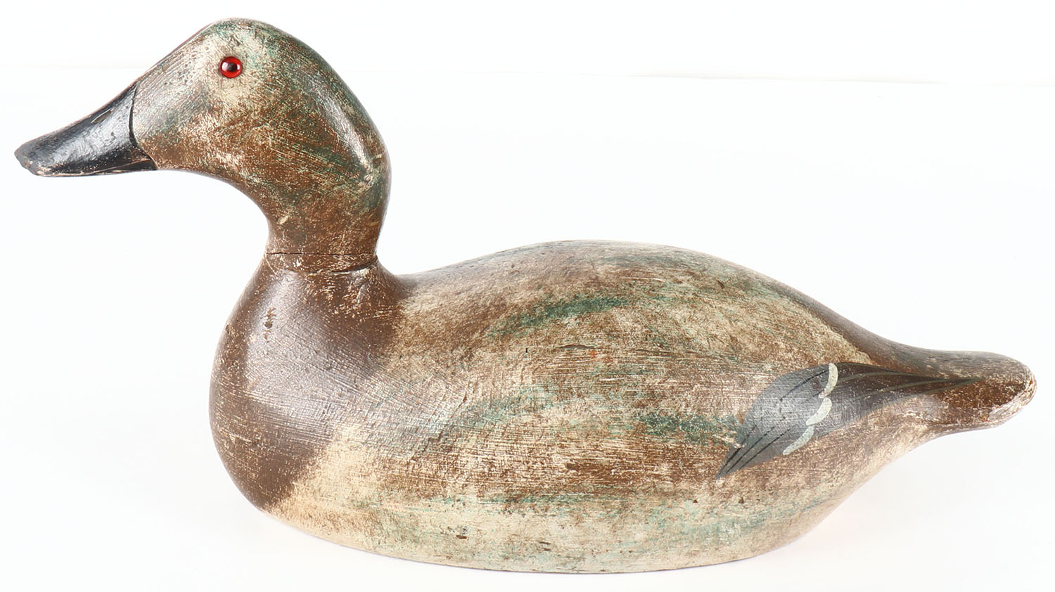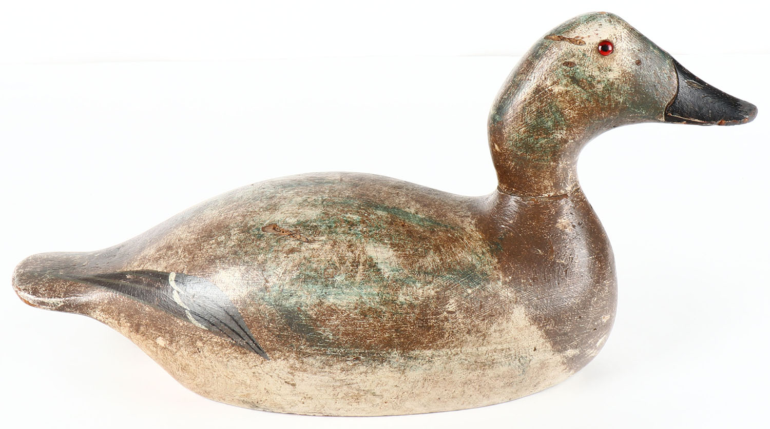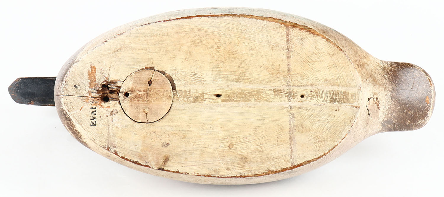 Canvasback Hen by Evans Decoy Company, Ladysmith, WI, 1921-1932, Mammoth Grade, glass eyes, solid wood, original paint, stamped on bottom. Grade: Very Good - Value: 40 to 250