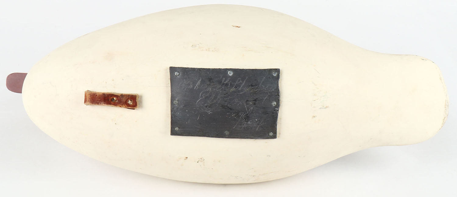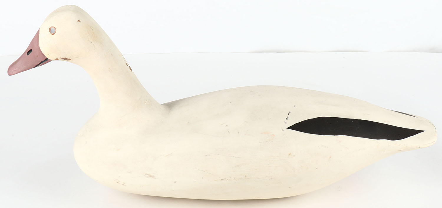Snow Goose by Robert G Litzenberg, Elkton, MD, PE, solid wood, original paint, structurally excellent, signed on bottom lead weight, 20'' OAL. Grade: Excellent - Value: 150 to 350