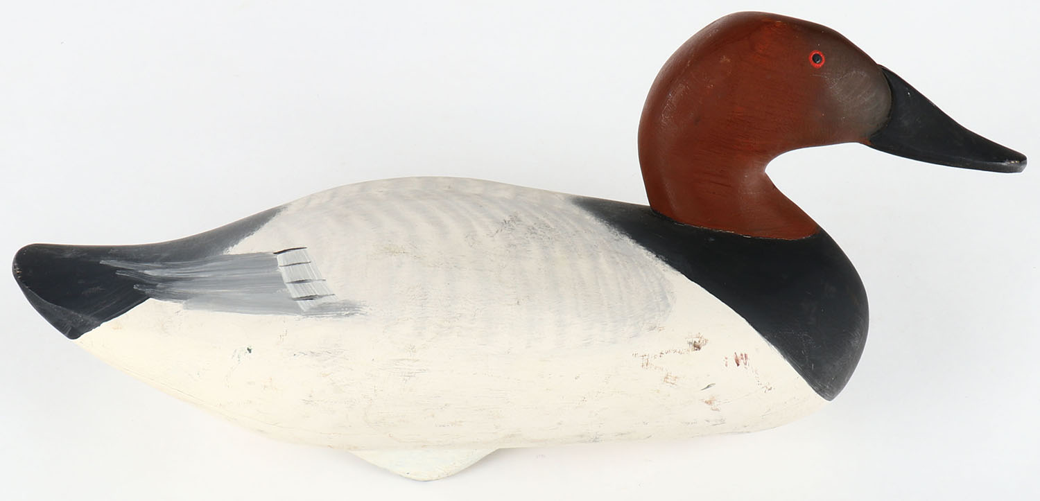 Canvasback Drake by unknown maker from MD, painted eyes, solid wood, original paint, structurally excellent, 16'' OAL. Grade: Excellent + - Value: 30 to 60