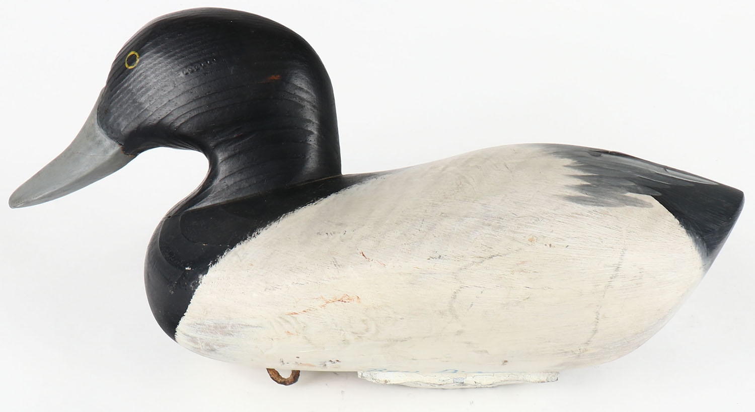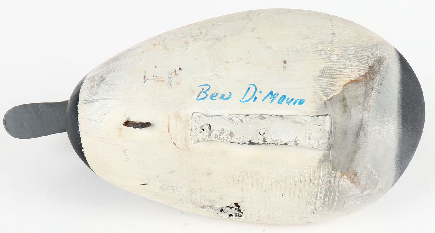 Bluebill Drake by Ben DiMauio, from MD, painted eyes, solid wood, original paint, structurally excellent, signed on bottom, 13 1/26'' OAL. Grade: Excellent + - Value: 30 to 60