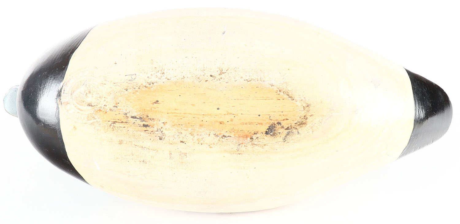 Bluebill Drake marked with Ducks Unlimited brand, GE, solid wood, original paint, structurally excellent, branded with DU name on bottom. Grade: Excellent + - Value: 30 to 60
